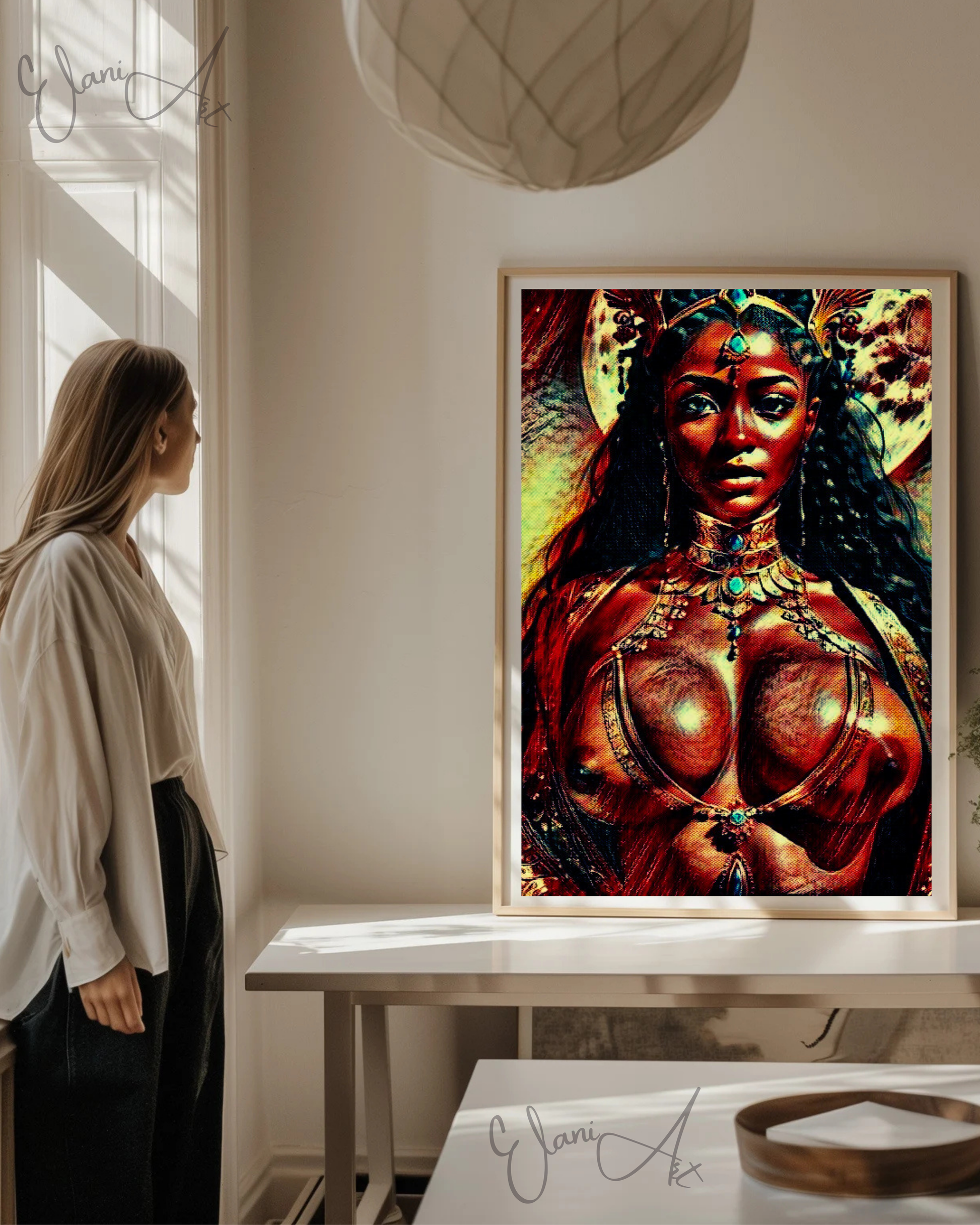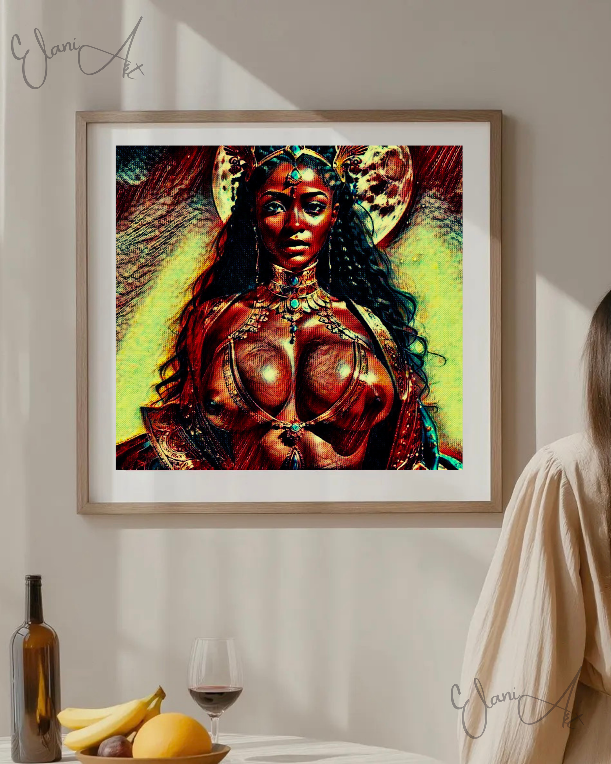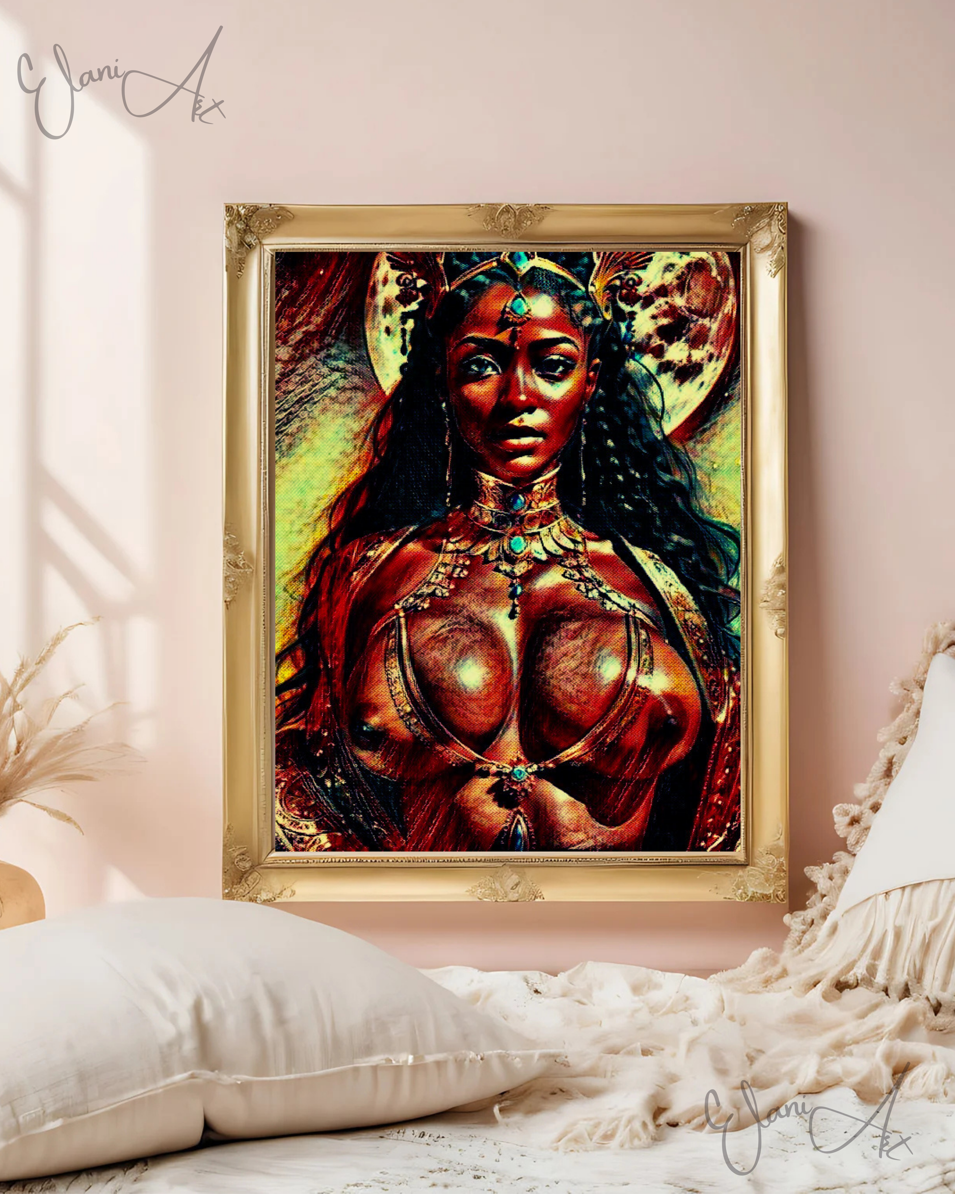 Uplift your room's decor with ElaniArt's ATHENA Original Vibrant Brown Red Erotic Woman Jeweled Greek Goddess of Wisdom Athena Impressionistic Wall Artwork Print - Erotic Art by ElaniArt.