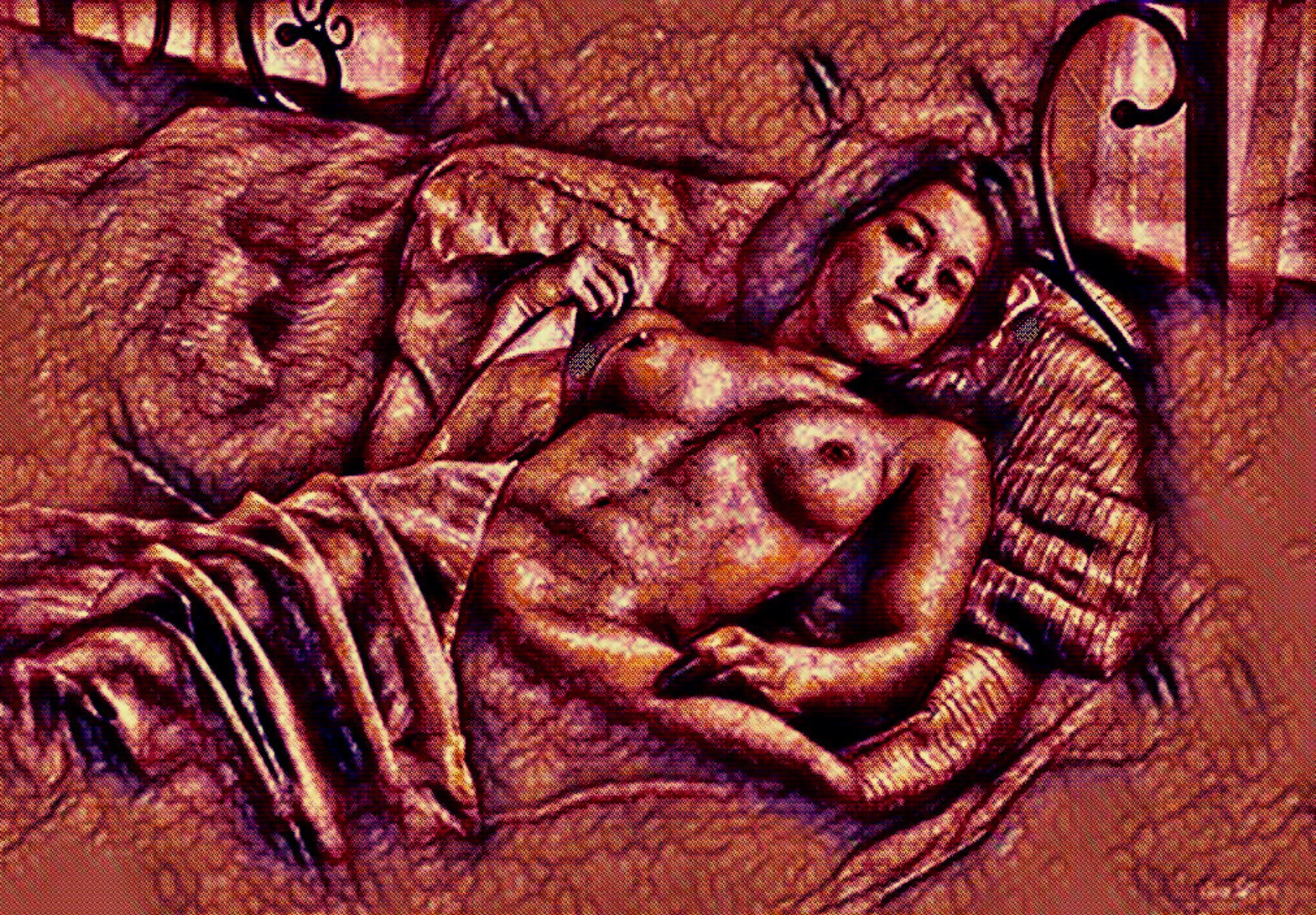 Uplift your room's decor with ElaniArt's SAUVIGNON Original Vibrant Red Colorful Erotic Nude Woman Laying Down Portrait Impressionistic Wall Artwork Print - Erotic Art by ElaniArt.