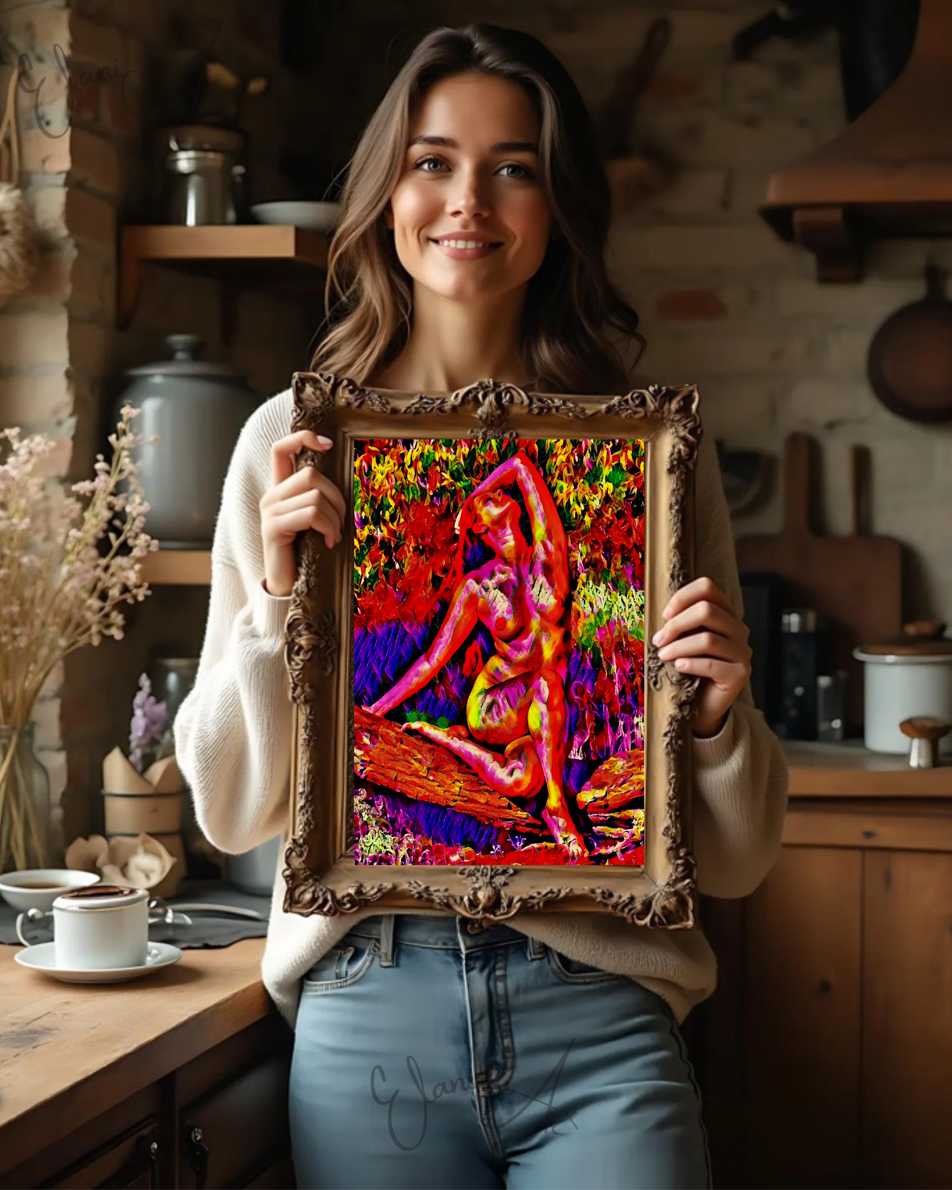Uplift your room's decor with ElaniArt's SILHOUETTE Original Vibrant Pink Purple Colorful Erotic Nude Woman Portrait Impressionistic Wall Artwork Print - Erotic Art by ElaniArt.