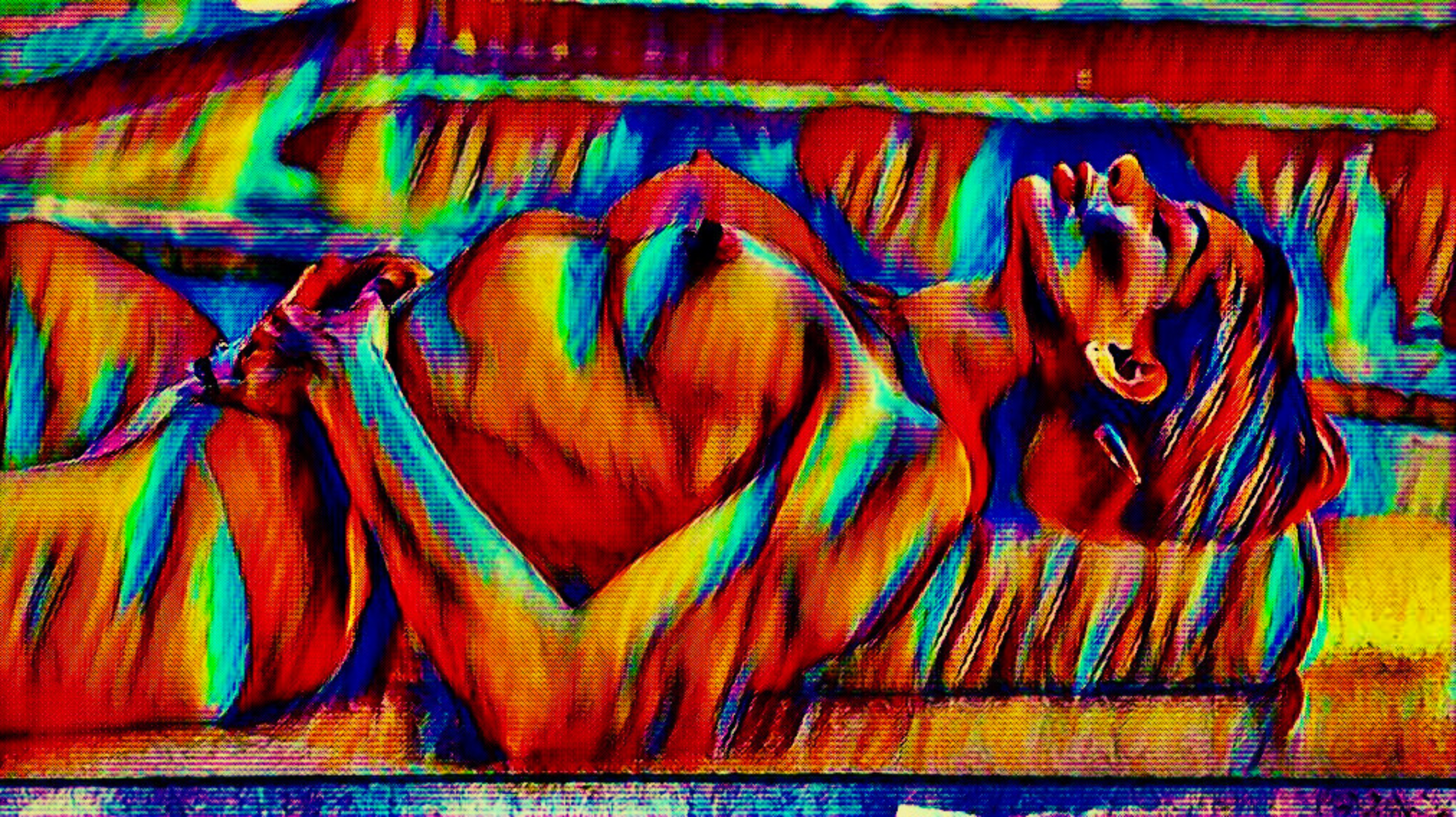 Uplift your room's decor with ElaniArt's SUNBATHING Original Vibrant Red Blue Colorful Erotic Nude Woman Sunbathing Impressionistic Wall Artwork Print - Erotic Art by ElaniArt.